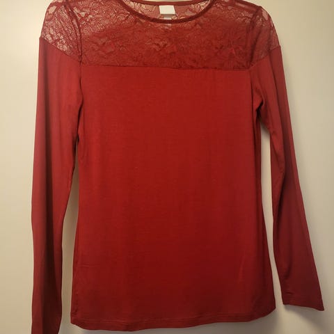 Lyhyehkö pusero, jossa on avara kaula-aukko ja 3/4-hihat. Pituus n. 60 cm. 95% viskoosia ja 5% elastaania. Mahdolliset postikulut 5e.