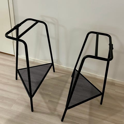 Stailauskäytöstä poistettu Ikean tummanvihreät metalliset Närspel pukkijalat.