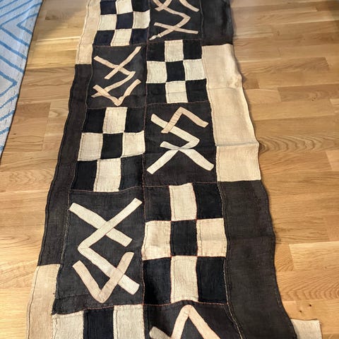 Palanen vanhaa kangasta, tietäjät tietää iän, en oikein itse osaa sanoa, vähintään 1950-luvulta, mitta epäilen että on 1800-luvun lopulta. Värilangan pätkä hävisi tuhkana ilmaan kun poltin, eli ainakin kuvioiden langat jotain luonnontuotetta. Siisti kunto, tästä voisi tehdä vielä jotain. Osa kuvista otettu työmaavalossa. Koko 37X65 cm