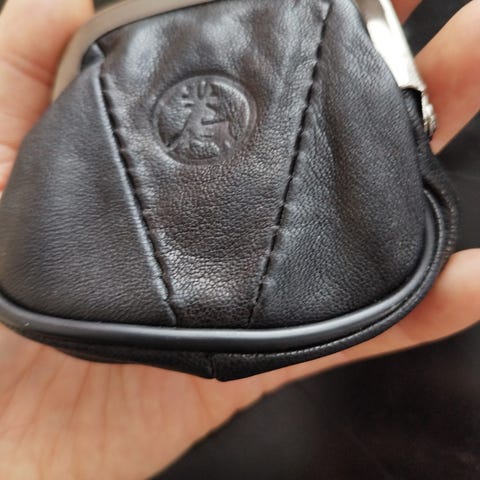 Nahkainen käyttämätön lompakko. Taitettuna koko 9 x 11cm. Korttitaskuja 8kpl, yksi läpinäkyvä tasku, vetoketjullinen kolikko-osa.