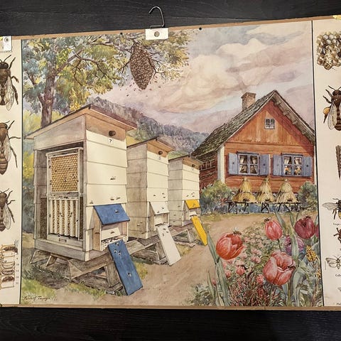 Kaunis koulukäytössä ollut opetustaulu jäniksestä