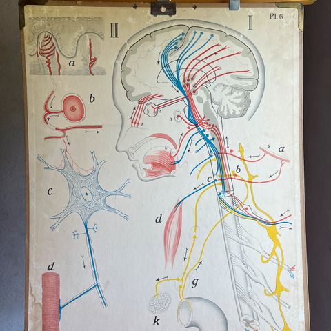 Komea, koulukäytössä ollut terveysopin opetustaulu ihmisen lihaksista