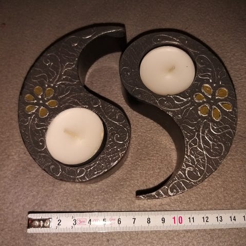 Myydään jin ja jang muotoinen mustavalkea kynäteline, jonka saa kahteen osaan. Korkeus 10 cm. Käy hyvin myös kukkamaljakoksi.