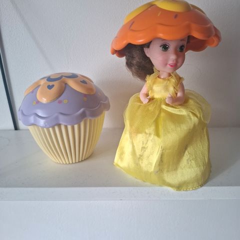 Ihanan tuoksuinen pieni nukke, joka tulee kuppikakun alta esiin.