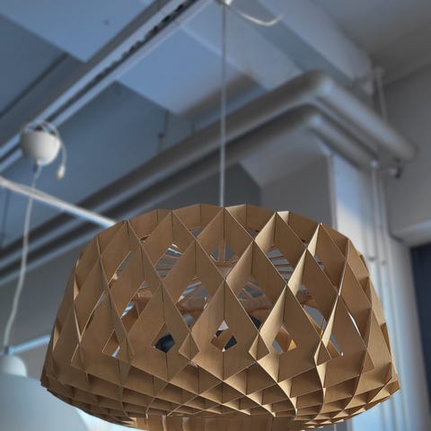 Varjostimen halkaisija 60 cm, valaisimen korkeus 165 cm.