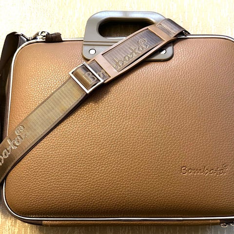 Tekonahkainen ehkä kerni kerninahkainen pussukka joka suljetaan vetoketjulla. Kätevä esim. tabletin tai pienen läppärin säilytyspussiksi. Laukussa on rannelenkki. Laukku suljetaan vetoketjulla. Takana erillinen vetoketjutasku. Siisti ulkoa ja sisältä.