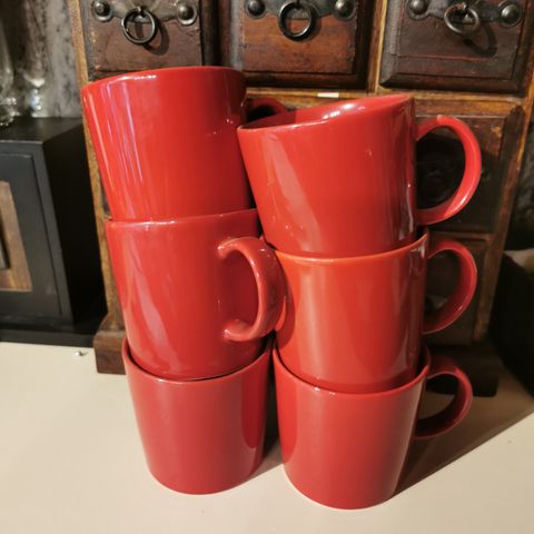 Iittalan punaiset teema-mukit. 2kpl 20€.