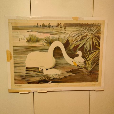 Kaunis vanha joutsen opetustaulu. Mitat: leveys 90 cm ja korkeus 65,5 cm. Kansanopettajain Oy Valistus Helsinki / Osakeyhtiö F. Tilgmann, Helsinki. Postitus onnistuu.
