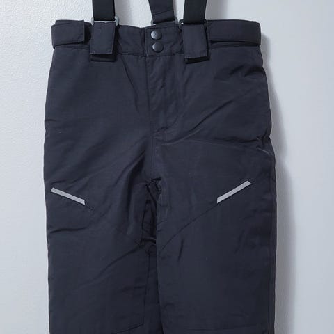 Name It merkin mustat toppahousut joustavilla henkseleillä. Koko 80 cm /9-12 kk, reiluhko koko - meillä mahtui vielä lähemmäs 2 vuottakin. Henkseleissä tarrakiinnitys. Heijastimet lahkeissa.