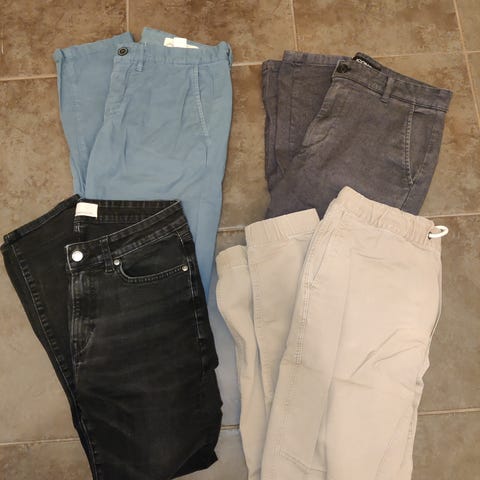 Miesten S-koon vaatteita: farkut, shortsit, t-paita