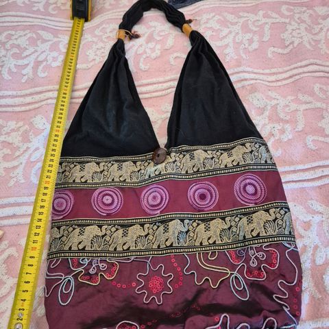 Ihana, värikäs, kankainen olkalaukku.