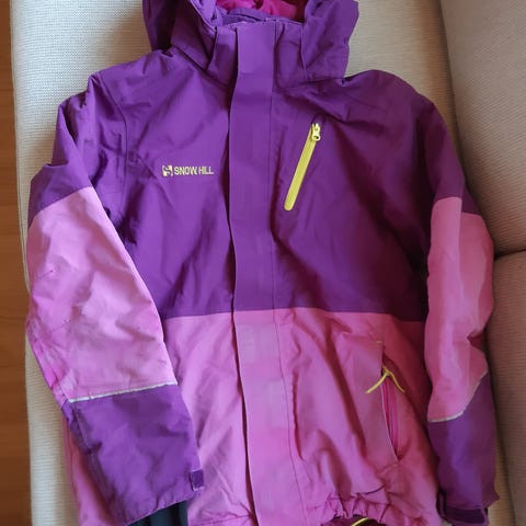 Toppatakki lumivyötäröllä ja hupulla. Pinkit reunukset. Hihatasku. Koko 164 luumun värinen violetti