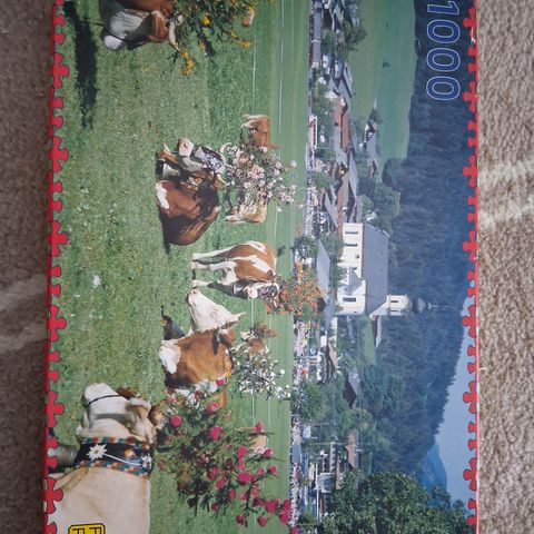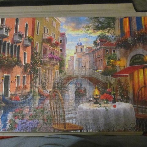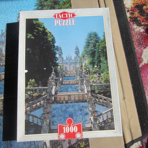 Hyväkuntoinen palapeli, purettuna omassa laatikossaan.