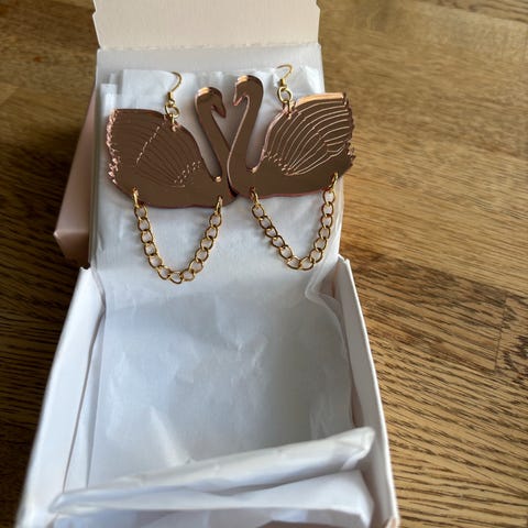 Riipuksen pituus noin 2.7 cm, koukun kanssa 4 cm. Leveys noin 1 cm.
