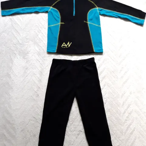 Lasten lähes käyttämätön fleece väliasu, koko 98-104 ja alusasun paita koko 98-104