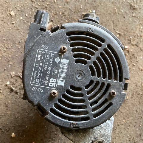 nissan micra k11 laturi sopii 1.0 ja 1.3 moottoreihin 23100 5f600/0123110007,12v 65a,valmistaja bosch.(varasto f10b)