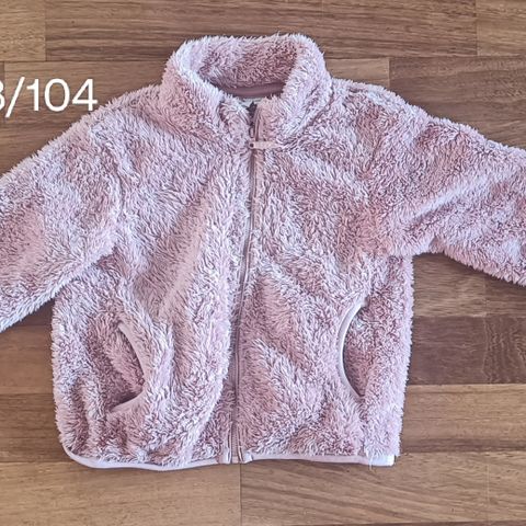 Myynnissä on fleeceasu pinkki , paksu , koko 98 , punainen fleecetakki on 104