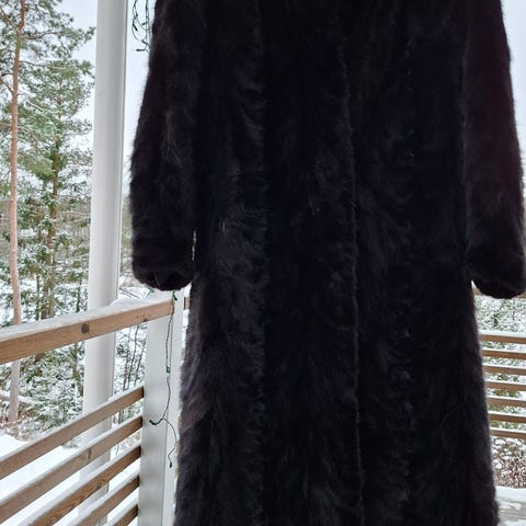 Tumma puolipitkä minkkiturkki. Koko M-L