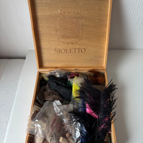Laaja valikoima monenlaista tavaraa perhojen tekemiseen.
