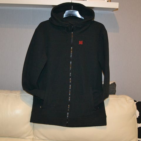 Myydään uusi miesten L-koon Simran-merkkinen paksu fleecetakki/ pusero, jossa on suden kuvat edessä ja takana.