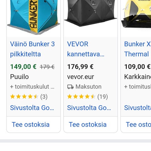 Bunker teltan värit on helppo huomioida jäällä joka luo turvallisuutta käyttäjälleen.