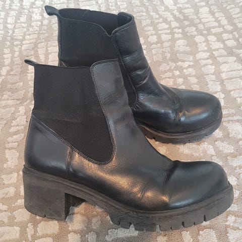 Mustat, lähes käyttämättömät, vetoketjut ja nauhat. Voin lähettää, kulut ostajalle.