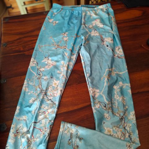 ** Sinertävät leggingsit. materiaali joustavaa keinokuitua, kooksi arvioisin M. Joustavat ja hengittävät, Nämä olleet metsäretkellä käytössä joten pieniä langan kiristymiä näistä löytyy (kuva yllä).