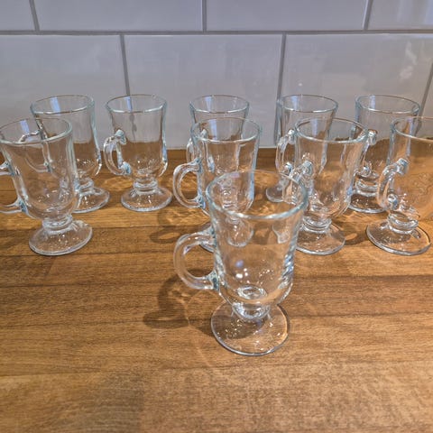 3 kpl lasimukeja, korkeus n. 14 cm, halkaisija 7 cm, hinta yht. 6 euroa