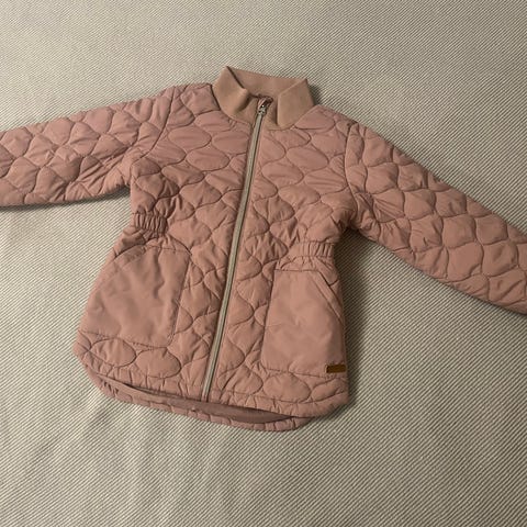 Petite Cherien vaaleanpunainen toppatakki / kevyttoppatakki koossa 110. Irroitettava huppu. Ihana kauppatakki / kyläilytakki. Siisti käytetty kunto.