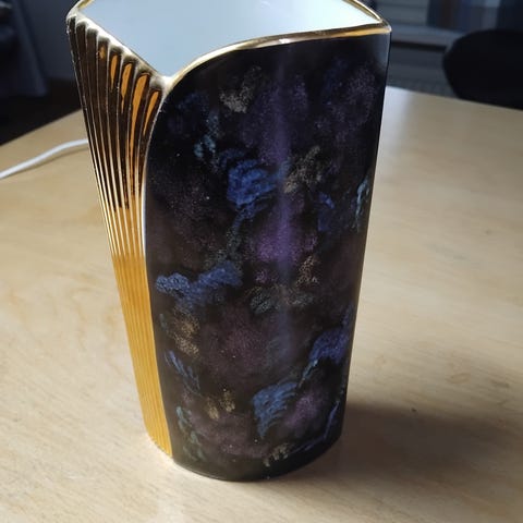 Vaalean/ruskean sävyinen maljakko Pentti Sarpanevan singreenauksella.Maljakon korkeus 21,5cm.