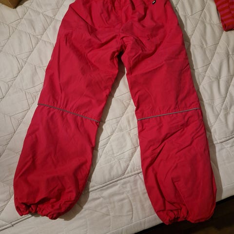 -toppahoujen vyötäröllä kiristystarranauhat ja lahkeissa lumilukot.