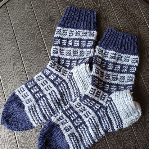 7-veljeksestä neulotut villasukat, koko n.38. Pohjan pituus 24,5cm, varren pituus 19cm.