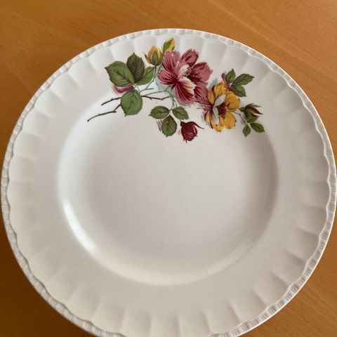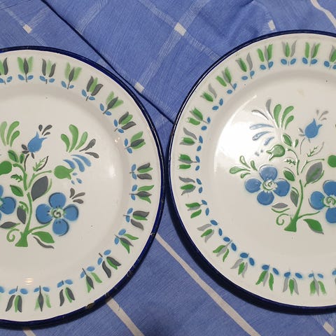 Puolalaiset syvät ruokalautaset.Lautasia 12 kpl. Orvokkikuvio ja kaunis kultareuna. Käytetty vain kaksissa juhlissa. Lautasten halkaisija 21 cm. Mielellään nouto Turusta.