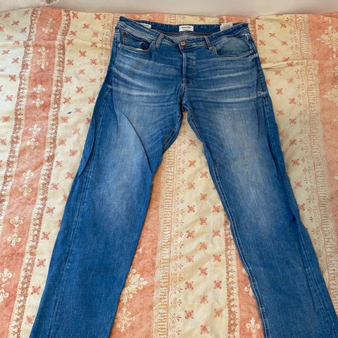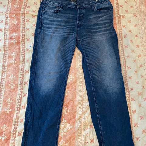 Tarjolla vähän käytetyt, keskisiniset, joustavat, kapeat ja siistit farkut.