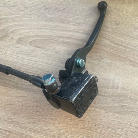 Moottoripyörän etu- ja takapyörät jarrulevyillä ja ketjupyörällä