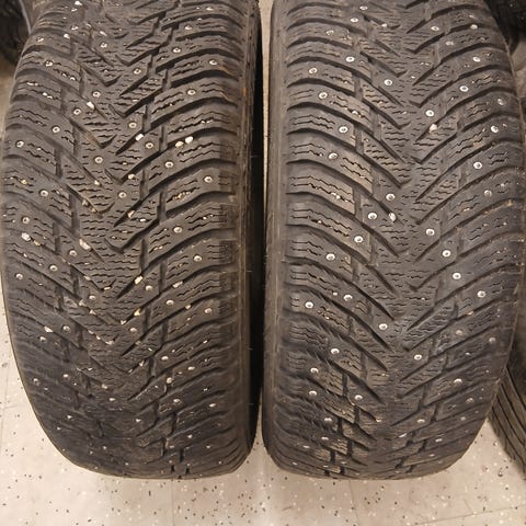 Pintaa 7-8mm mutta nastoja ei juuri ole. Näis kun nyppii loput nastan jämät pois niin saa hyvät kitkarenkaat ympärivuotiseen käyttöön.