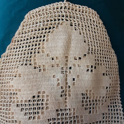 Musta pohja kauttaaltaan ristipistokirjontaa, kulmissa tyylitelty kukka-aihe, myös ristipistoina toteutettu. Koko n. 60 x 60 cm. Työ on vuorattu, wanha ja käyttämätön, ilmeisesti tarkoitettu pöytäliinaksi, mutta soveltuu myös esim tyynyn/lattiatyynyn päälliseksi. Hinta isotöiselle, hyväkuntoiselle wanhalle työlle 30e.