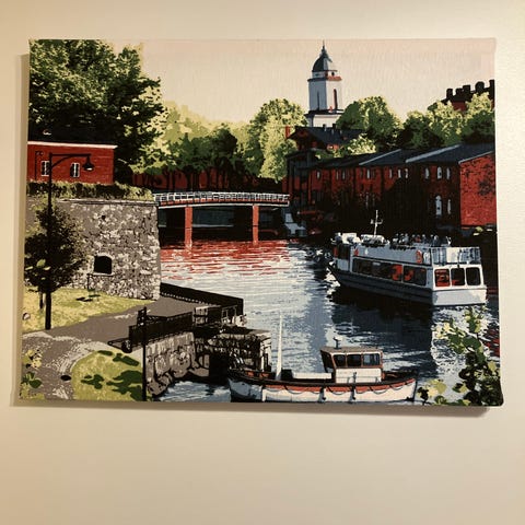 Ihana Turkumaisema Vallilan kankaasta vanhaan ikkunapokaan tehty taulu, jossa valot. Kaunis ilman valojakin, mutta ei löydä uudessa kodissa paikkaa. Turkulaisen tekemä ja itsellä ollut todella vähäisellä käytöllä.