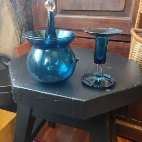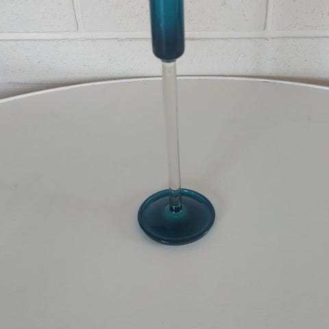 Ehjä, tehdaskunnossa. Jalan alaosassa lasimassassa pieniä yksilöllisiä valmistuksen piirteitä jotka antavat lisämaustetta kauniille esineelle.