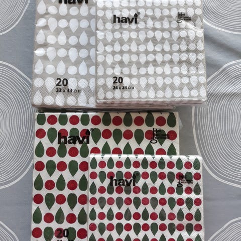 Uudet (avaamaton) Havin servetti / kahviliina / lautasliina / ruokaliina, 3 pakettia.