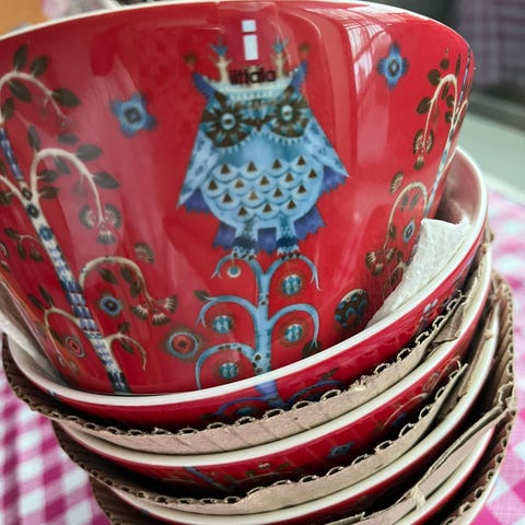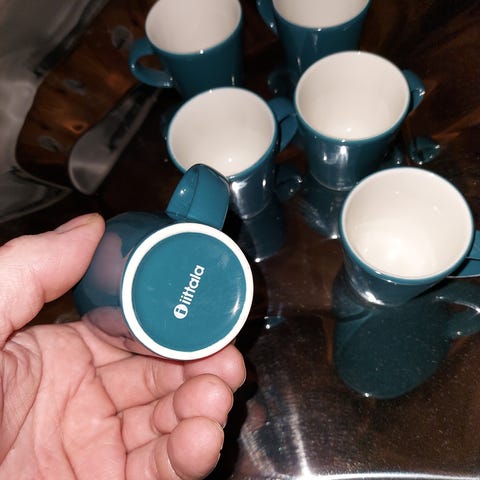 12 kpl kuppeja, aluslautasia sekä pullalautasia. Kuin uudet, käytetty vain 2-3 kertaa. Isohko kuppi, sama kuin Taika tai Sato sarjan kupit.