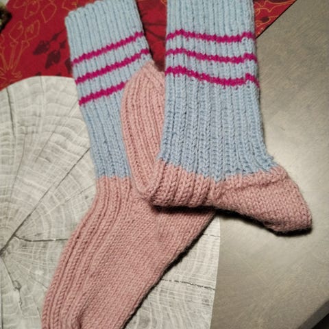 Villasukat 3 paria koko n.38.lyhyet säärystimet 19 ja 12cm.kaikki itse kudottuja 7-veljestä lankaa. Uudet. Villasukat 7e/pari,säärystimet 3e/pari. Siniset säärystimet myyty.