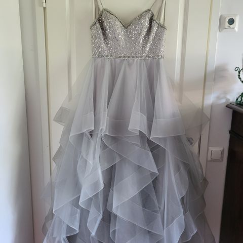 Myydään kerran käytetty Zazabellasta ostettu ja ammattiompelijalla lyhennetty mekko sirolle 153cm pitkälle, koon 32 tanssijalle. Edellinen tanssija tanssi paksupohjaisissa tennareissa (pohjan paksuus 3cm).Helma ja olkaimet on lyhennetty eli tästä samankokoiselle sirolle tanssijalle valmis mekko ilman lyhennyspaineita. Tätä on käytetty ilman vannetta.