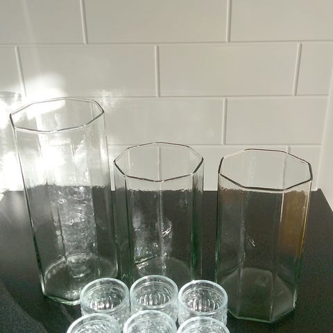 Neljä kappaletta Riihimäen Lasin vanhoja oluttuoppeja.