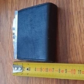 Kolme erikokoista sisäkkäin menevää samettipintaista kukkaroa vetoketjulla.Muovitettu sisäpuoli.
