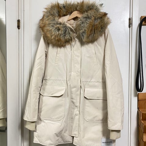 Täysin käyttämätön Calvin Klein untuvatakki, vaalea beige, koko L. Ostaja maksaa postikulut.