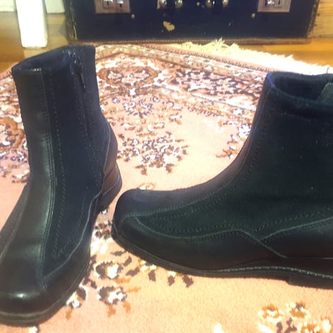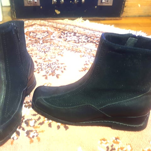 Tästä hyväkuntoiset mustat Pomarin nahkaiset talvinilkkurit kokoa 36. Vetskari sisäsivulla.