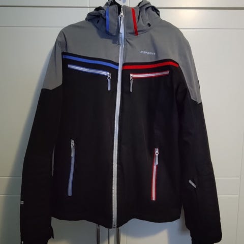 Laput vielä kiinni takissa oleva uusi Icepeakin muhkea hopinen toppatakki.
