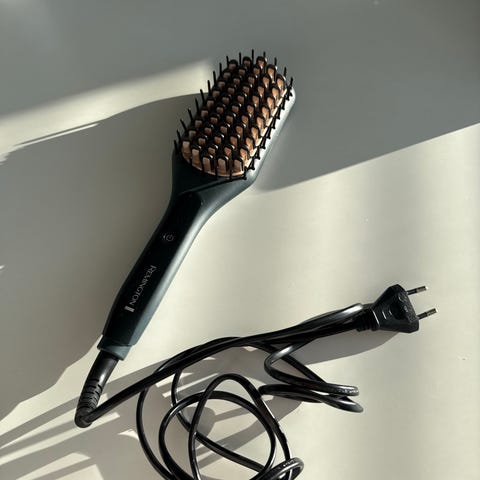Muutamasti käytetty Remingtonin hiusten suoristusharja mallia CB7480. Kissatalous.