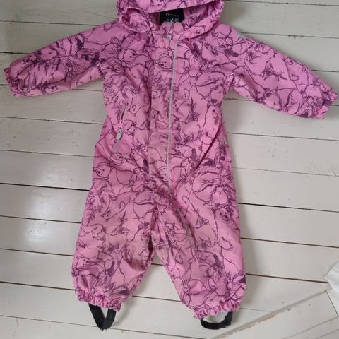 Myydään kivalla kuosilla Reiman talvihaalari koossa 86 (väljä malli, kasvunvaraa). Ehjä ja lämmin, leikeissä paikoin pinnasta aavistuksen kulunut haalari (kangas mm. pepun seudulta hieman pehmentynyt). Käyttökuluma huomioitu hinnassa. Jalkalenkit puuttuvat - napit näitä varten paikallaan, joten ne helppo uusia. Nouto Lohjalta Mäntynummesta/Ventelästä.